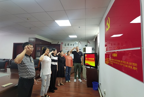 6月4日上午,市残疾人康复中心支部组织党员干部在党员活动室开展了“党旗,我向您宣誓”主题党日活动。