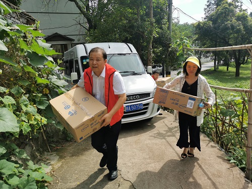 七月的洪城,骄阳似火。党员志愿者们不顾天气炎热,先后来到梅岭镇店前社区胡大爷、瓦窑社区付大叔家中,配送了助行器、尿不湿等辅助器具。