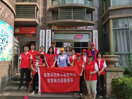 9月18日,南昌市残疾人康复中心组织党员志愿者深入到怡园社区洪城比华利,开展文明帮建志愿服务活动,弘扬“奉献、友爱、互助、进步”的志愿者精神。