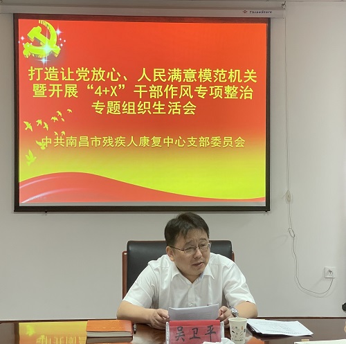 按照市残联党总支的统一部署,6月28日下午,康复中心组织全体党员召开打造让党放心、人民满意的模范机关暨“4+X”干部作风专项整治专题组织生活会。本次会议由市残疾人康复中心党支部书记主持,市残联党组成员、副理事长吴卫平出席本次会议。