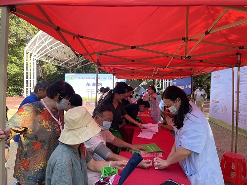 活动现场设立有康复政策咨询区、视力检测区、健康义诊区等各类康复科普宣传展台,康复中心工作人员向前来参加活动的群众们耐心讲解残疾预防及康复知识,并向现场群众发放宣传折页。来自专业医院的医生有条不紊地为现场群众提供血压测量、血糖测量、健康指导等免费义诊服务。