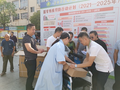 为将康复服务深入到社区,9月27日上午,南昌市残疾人康复科普知识宣传教育活动走进高新区南塘村。在现场,不仅为有需求的残疾人发放了轮椅、腋拐、尿不湿、护理垫等辅具(用品),康复中心工作人员向社区居民发放了康复知识手册和宣传折页,讲解了残疾预防等相关知识并进行健康指导;同时为使群众能在家门口就可以享受贴心周到的服务,还邀请了医院的专业医生开展了视力筛查、听力检查、量血压、测血糖等义诊服务;为延伸服务内容,还通过宣传展板向民众宣传了各类残疾人康复科普知识,营造了良好的社会氛围。