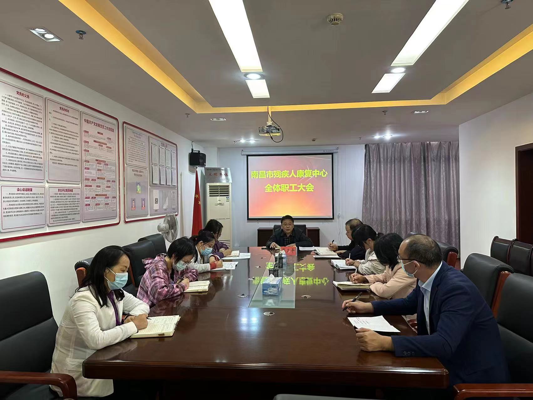 10月12日下午,南昌市残疾人康复中心召开全体职工大会,会议由中心主任杨昕主持,党组成员、副理事长吴卫平出席会议并讲话。