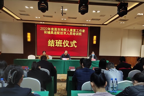 11月24日,2022年南昌市残疾人康复工作者和辅具适配技术人员培训班在南昌溪霞假日酒店圆满结束。市残疾人康复中心主任杨昕出席结班仪式并作讲话,市残疾人康复中心副主任苏晓媚主持结班仪式。