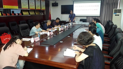 (潘四清一行听取就业中心2016-2017年党风廉政建设汇报)