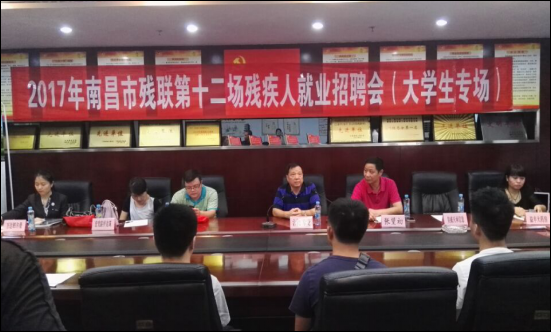 本次招聘会由爱心企业南昌万达铂尔曼酒店、江西益丰大药房、江西省宏发路桥建筑工程有限公司、南昌昊威天承信息技术有限公司、南昌赣建工程质量检测中心为活动提供了文员、后勤、会计、收银员、数据录入员、服务员、维修工等30个岗位,60 余名残疾人前来求职。活动现场,副调研员涂毅表示市残联作为残疾人大学生的“娘家人”,在他们创业就业的过程中,将始终当好“引路人“、“铺路石”和“助推器”,让残疾人大学生独立人生的第一段路走得更自信更踏实。残友们与招聘人员进行面对面的交谈,详细了解岗位的要求,仔细填写应聘表,努力寻找适合自身条件的工作岗位。有 28人与用人单位初步达成就业意向。