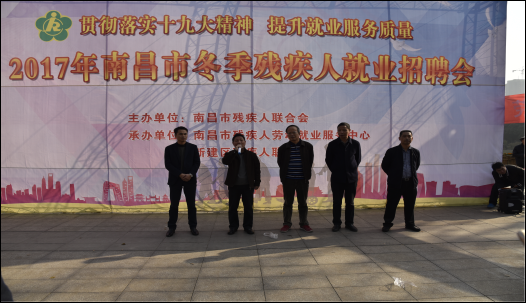 11月23日上午,市残联和新建区残联在新建区礼步湖联合举办2017年南昌市冬季残疾人就业招聘会。市残联调研员章建辉出席,教就处宗慧民处长主持,就业中心张望初主任、新建区理事长万勇陪同。