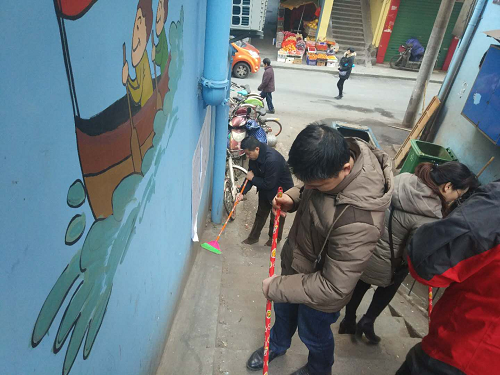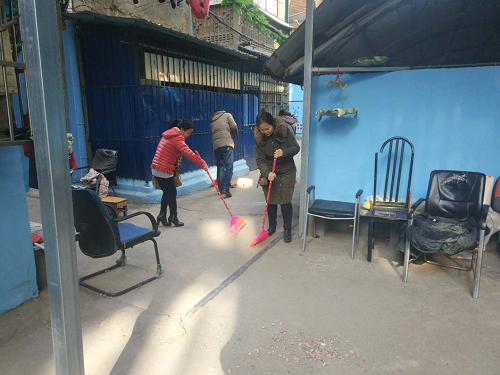 中心党支部全体党员与社区工作人员一起为社区的路面、楼道打扫卫生,将社区街道中的废弃杂物,积存垃圾进行了全面清理,以崭新的城市容貌迎接新春佳节,确保春节期间环境更加整洁有序,让康王庙的社区居民能在一个干净、整洁、文明的家园中迎接新年。