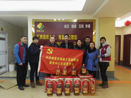 2月9日,在中国传统的农历小年,就业中心党支部组织全体党员干部到党建帮扶点南昌市博爱残疾人托养中心开展走访慰问活动。为了确保党建帮扶点----南昌市博爱残疾人托养中心的残疾学员过上一个幸福温暖的节日。在就业中心党支部书记张望初的带领下,开展“迎新年、送温暖”走访慰问活动,将米、油等慰问品发放到残疾学员手中,及时送去党和政府的关怀和温暖,让他们高高兴兴过新年。