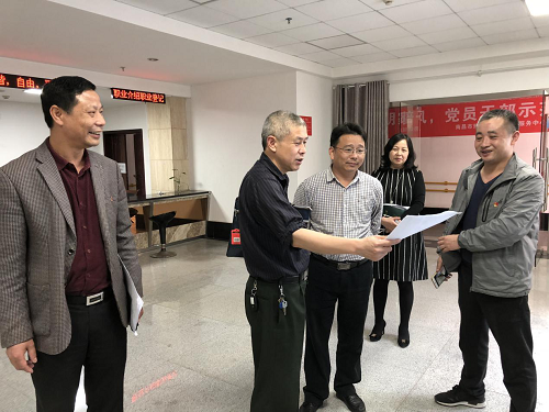 4月24日下午,市纪委驻民政局纪检组组长潘四清等一行四人在市残联党组成员、副理事长吴卫平,市残联机关党总支专职副书记周红华的陪同下,到南昌市残疾人劳动就业服务中心调研党风廉政建设工作。