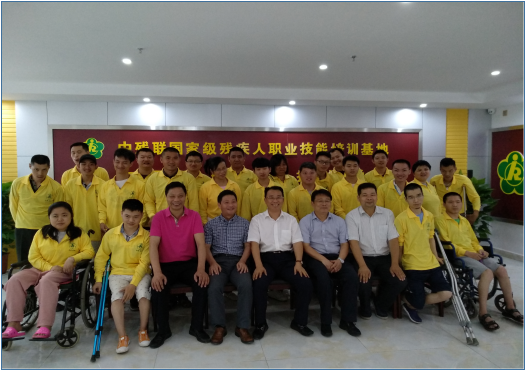 仪式最后,全体学员在市残联党组书记、理事长余颖带领下,重温培训基地校训“我行、我能、我自强”。