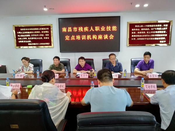 6月21日上午,南昌市残疾人职业技能定点培训机构座谈会在市残联五楼会议室召开。市残联党组成员、副理事长吴卫平,调研员章建辉出席。就业中心主任张望初主持会议。参加会议的还有教就处处长宗慧民,盲导中心副主任陈妍,6家定点培训机构负责人及相关工作人员。