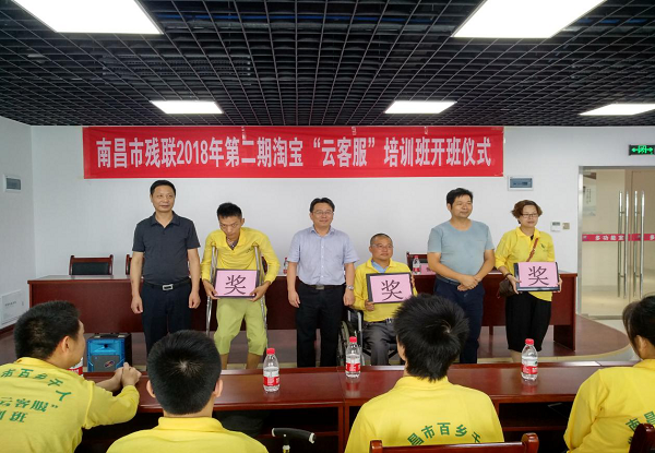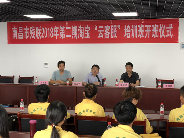 7月23日下午,南昌市残联2018年第二期淘宝“云客服”培训在南昌科创职业技术学校正式开班。市残联党组成员、副理事长吴卫平出席仪式,就业中心主任张望初主持仪式。参加仪式的还有就业中心相关工作人员和本期全体参训学员。