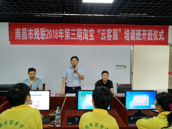 8月14日上午,南昌市残联第三期淘宝“云客服”培训班在南昌科创职业技术学校正式开班。市残联党组成员、副理事长吴卫平出席开班仪式并讲话。仪式由教就处处长宗慧民主持,学员18人,各县(区)残联分管领导及相关工作人员参加仪式。