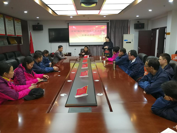 江西省“振兴杯”残疾人职业技能竞赛将于11月13-14日在南昌举行。12日上午,市残联在四楼就业中心会议室组织全体选手召开赛前动员会,市残联党组成员、副理事长吴卫平出席并讲话,就业中心主任张望初主持会议。