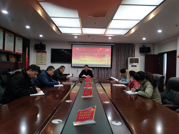 1月15日上午,就业中心组织各科室负责人召开2019年就业援助月残疾人招聘工作布置会。就业中心主任张望初主持。