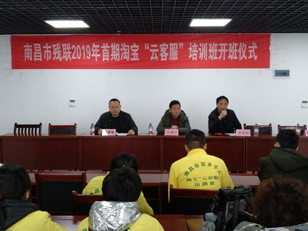 为进一步拓宽残疾人就业渠道,帮助更多的残友实现“互联网+”创业就业,2019年首期淘宝“云客服”开班仪式于1月16日上午在南昌市科创职业培训学校举行,市残联教就处 处长宗慧民出席仪式,就业中心主任张望初主持仪式。参加仪式的还有就业中心相关工作人员和全体参训学员。