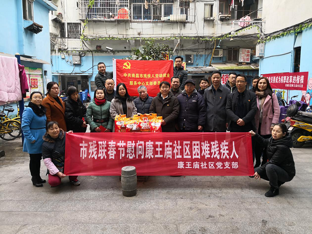 在新春佳节即将来临之际,1月22日上午,市残联党组成员、副理事长吴卫平带领就业中心党支部全体党员一行到社区共建点—康王庙社区开展春节走访慰问活动,把祝福和温暖送到贫困残疾人的心坎上。