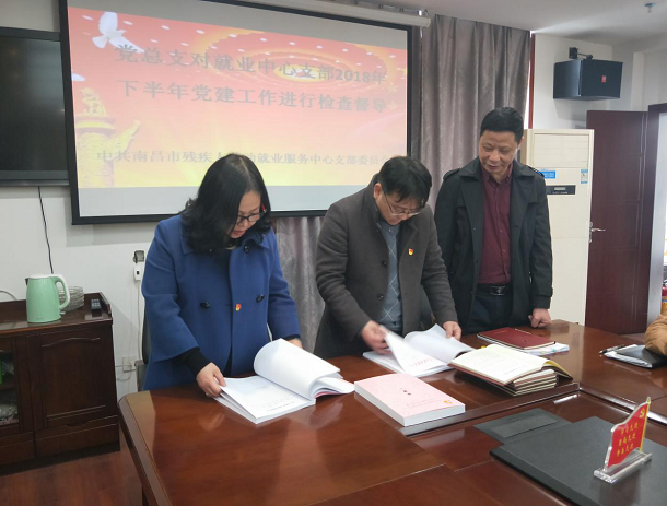 3月14日下午,市残联党组成员、副理事长吴卫平,机关党总支专职副书记周红华对就业中心支部2018年下半年党建工作进行检查。