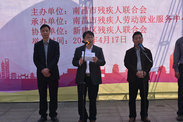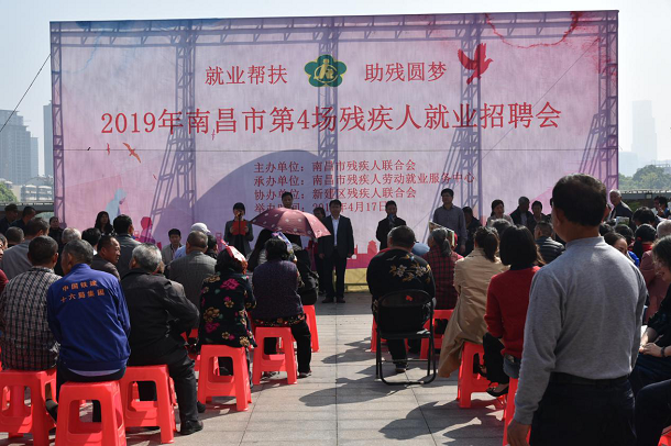 为贯彻落实习近平新时代中国特色社会主义思想,进一步加快残疾人脱贫攻坚步伐,实现残健共奔小康。4月17日上午,由南昌市残疾人联合会主办,南昌市残疾人劳动就业服务中心承办,新建区残疾人联合会协办的“就业帮扶 助残圆梦 ”2019年南昌市第四场残疾人就业招聘会在新建区礼步湖广场隆重举行。市残联副理事长吴卫平出席启动仪式,市残联教就处处长宗慧民主持仪式。