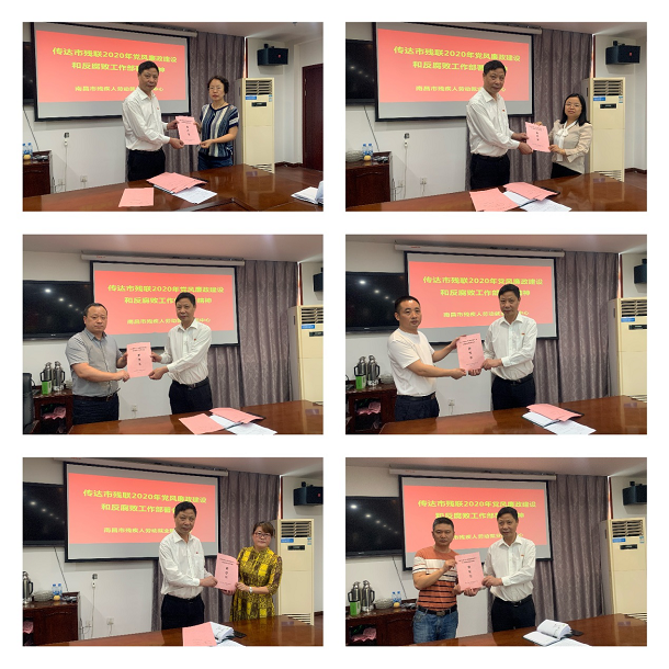会中,首先学习市残联2020年党风廉政建设和反腐败工作要点文件精神,随后传达市残联2020年党风廉政建设和反腐败工作部署会精神,最后,党支部书记张望初同志与各科室负责人签订2020年党风廉政建设和反腐败责任书。通过签订责任书,强化了责任担当,落实了 “一岗双责”,将党风廉政建设工作与业务工作同部署、同落实,提醒党员干部时刻绷紧“廉政弦”,确保党风廉政建设工作落到实处。