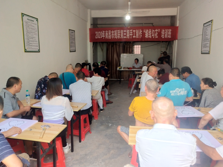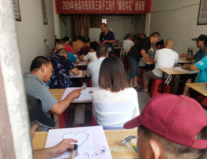 为扎实做好“六稳”工作,促进落实“六保”任务,进一步提高残疾人职业技能水平,增强残疾人就业竞争能力,促进残疾人就业创业,9月3日,2020年南昌市残联第三期初级“手工制作(编线勾花)”培训班在南昌市青云谱区赣艺龙职业培训学校开班。本次培训为期1个月,共有30名学员。