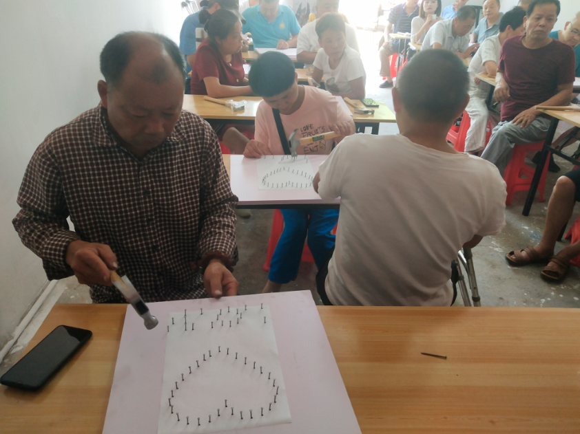 绕线钉子画制作,不仅能够通过手工编织的训练,锻炼他们的动手能力,还能够提高残疾人的职业技能水平,丰富残疾人生活,拓宽就业渠道,增强残疾人主动融入社会的信心,提升幸福感、获得感和安全感。