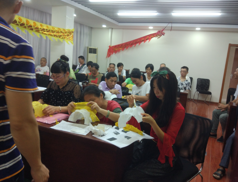 城南龙灯是省级非物质文化遗产传承项目,龙灯在制作过程中,采用剪、刻、画、扎、雕、绣、缝等多种工艺,使彩龙达到轻、巧、固、美的要求。制作成功的彩龙造型优美,色彩艳丽,栩栩如生,龙头活络有神,出神入化。本次培训为期1个月,共有30名学员。培训内容主要包括城南龙灯历史文化、珠绣龙灯的制作方法和技巧、组装和调试等。培训合格后,学员可以承接外加工,实现自主就业创业。