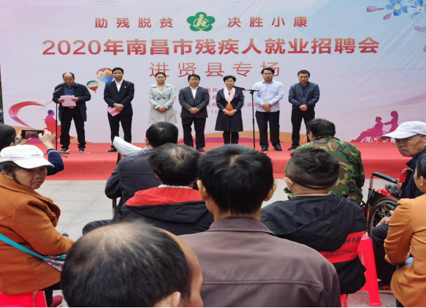10月29日上午,由南昌市残疾人联合会主办,进贤县残疾人联合会、南昌市残疾人劳动就业服务中心承办,以“助残脱贫 决胜小康”为主题的2020年南昌市第九场残疾人就业招聘会在进贤县太阳城广场隆重举办。本次残疾人就业招聘会,旨在搭建用人单位与残疾人面对面沟通的就业帮扶平台,通过精准对接,解决我市农村残疾人就业问题,促进贫困残疾人通过就业增收实现脱贫,以实际行动扎实做好“六稳”工作,落实“六保”任务。市残联党组成员、副理事长吴卫平,进贤县副县长涂莉花出席活动,市残联就业中心主任张望初主持活动启动仪式。