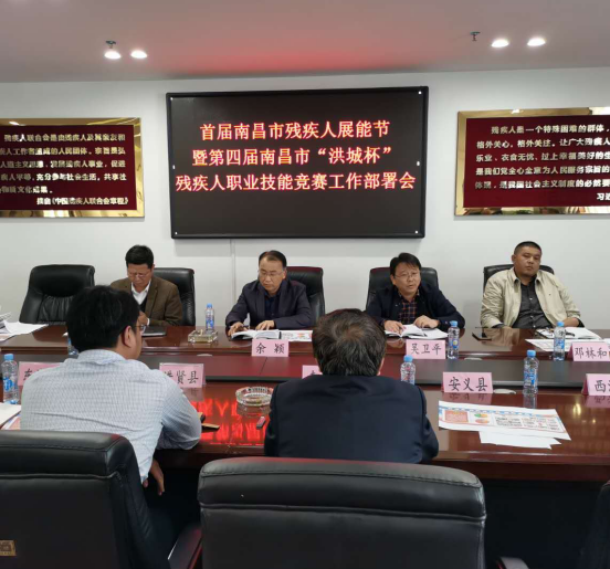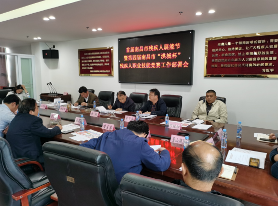 为部署首届南昌市残疾人展能节暨第四届南昌市“洪城杯”残疾人职业技能竞赛有关工作的安排,11月3日下午,首届南昌市残疾人展能节暨第四届南昌市“洪城杯”残疾人职业技能竞赛工作部署会在市残联五楼会议室召开。市残联党组书记、理事长余颖出席会议并讲话,市残联党组成员、副理事长吴卫平主持会议,市残联党组成员、副理事长林善岳、邓林和,市残联四级调研员徐训波出席会议。