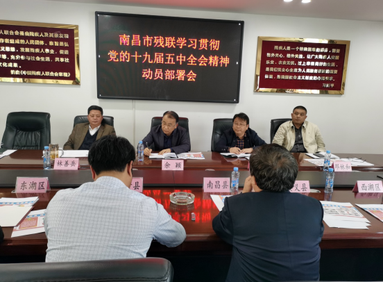 11月3日下午,南昌市残联学习贯彻党的十九届五中全会精神动员部署会在市残联五楼会议室召开。市残联党组书记、理事长余颖出席会议,市残联党组成员、副理事长吴卫平主持会议,市残联党组成员、副理事长林善岳、邓林和,市残联四级调研员徐训波出席会议。