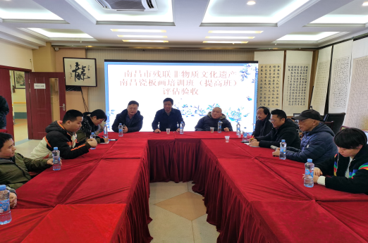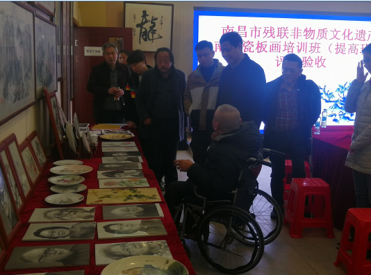 12月10日上午,市残联就业中心邀请南昌瓷板画大师李春敏、喻荣华等来到南昌市青云谱区赣艺龙职业培训学校对南昌市非物质文化遗产瓷板画提升培训班进行评估验收。
