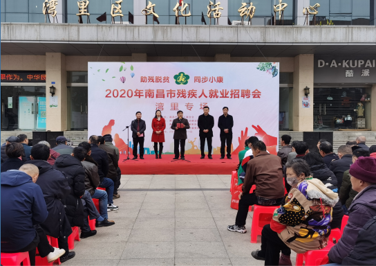 在全市上下深入学习贯彻党的十九届五中全会精神,决战脱贫攻坚,决胜全面建成小康社会之际,为彰显省会担当,展现残联作为,12月11日上午,由南昌市残疾人联合会主办,湾里管理局社会事务办、南昌市残疾人劳动就业服务中心承办,湾里公共就业人才服务局协办,以“助残脱贫 同步小康”为主题的2020年南昌市第十三场残疾人就业招聘会在湾里局文化活动中心成功举办。本次残疾人就业招聘会,旨在帮助广大残疾人实现就业愿望,残健同步小康。市残联党组成员、副理事长吴卫平,湾里管理局社会事务办公室主任李建国出席活动,市残联教就科科长宗慧民主持活动启动仪式。