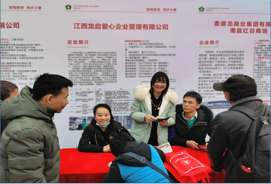 招聘会共邀请江西龙启、麦德龙商业集团有限公司、中国人寿保险股份有限公司等9家企业进行招聘,提供销售经理、督导员、分拣员、茶艺师、文员、厨师、客户顾问、秩序维护员、操作员等18个工种184个就业岗位。