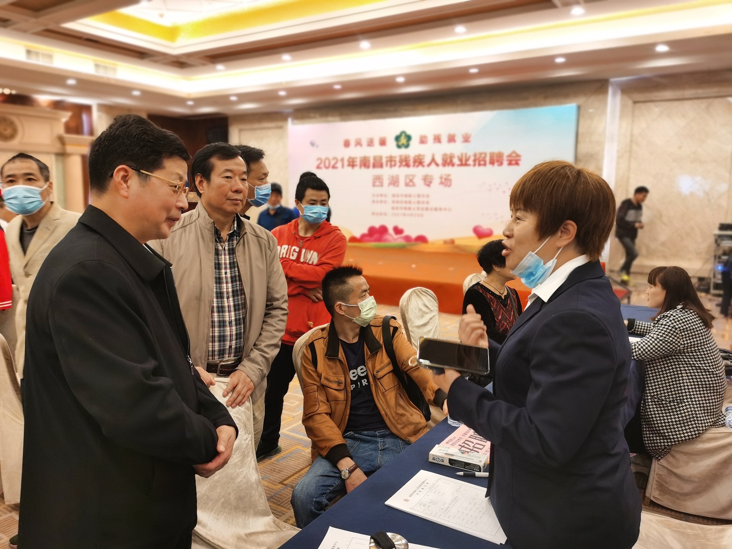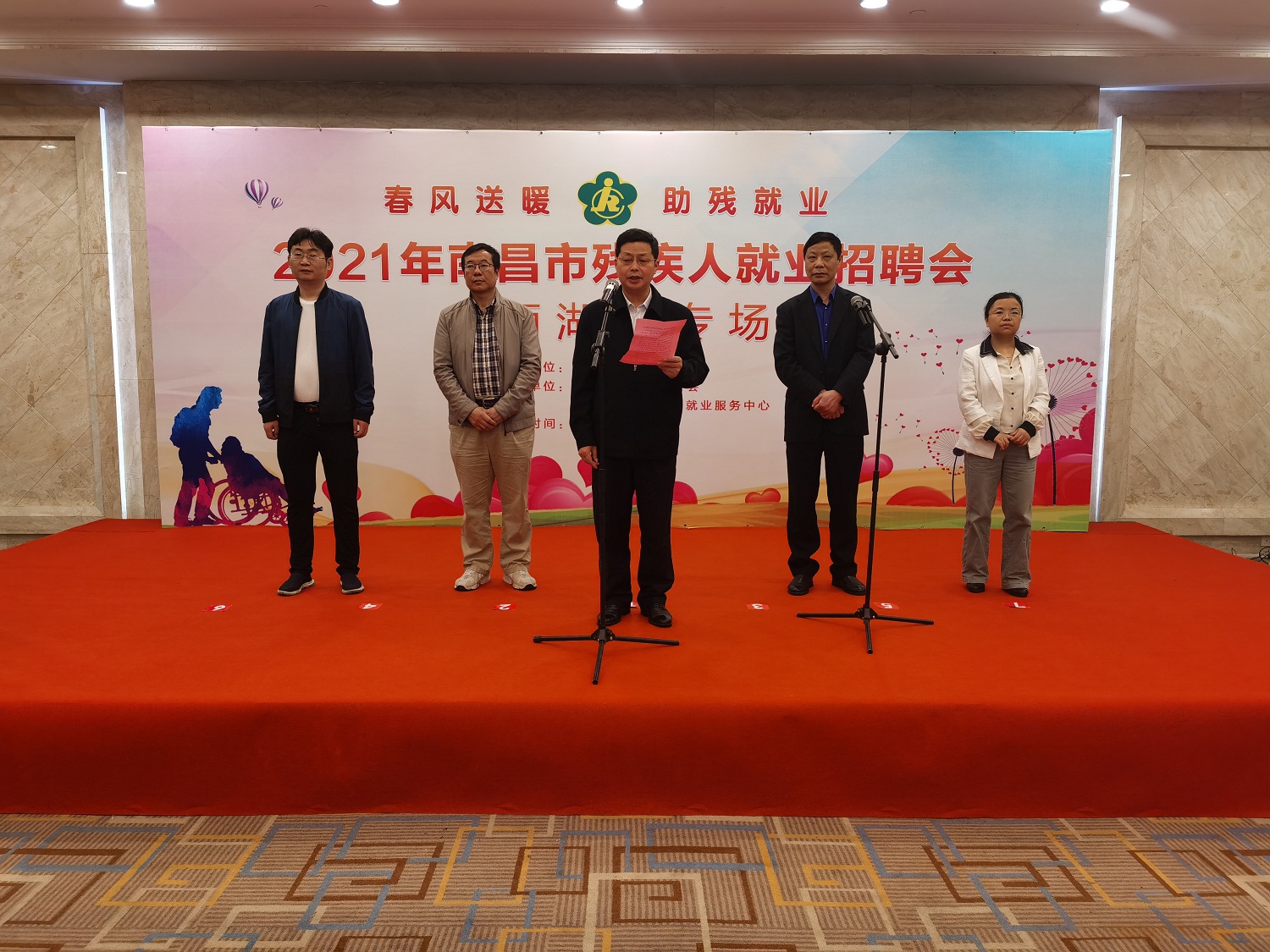 4月23日上午,2021年南昌市第三场残疾人就业招聘会西湖区专场在嘉莱特和平国际酒店举办。市残联副理事长林善岳,西湖区残联理事长艾顺明,市残联就业中心主任张望初,西湖区残联副理事长胡翔出席招聘活动。