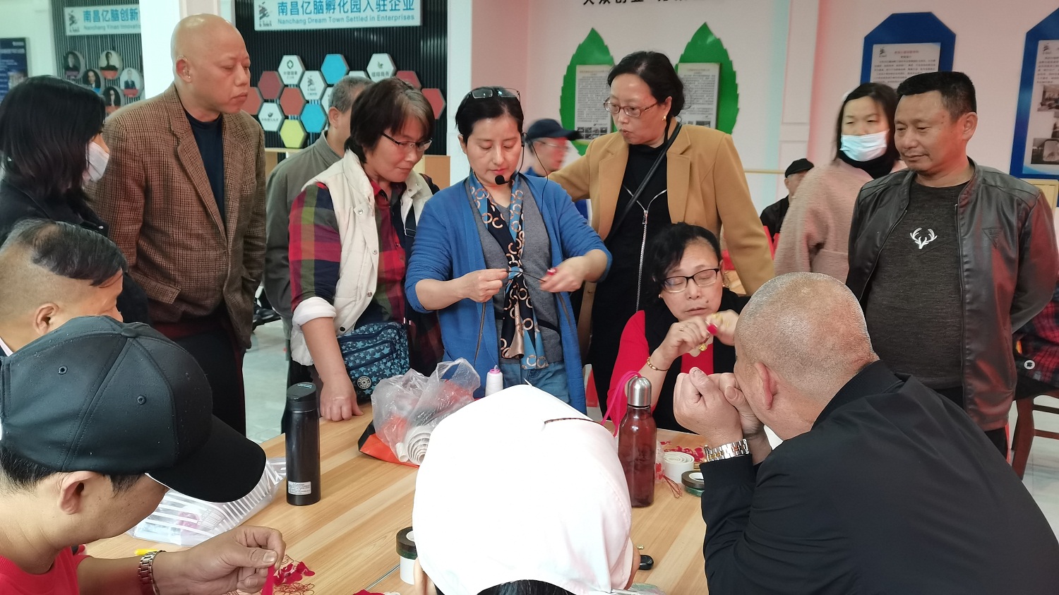 此次培训主要内容为介绍丝网花的制作工具、选材用料、花型配色和制作方法与技巧等。培训中,指导老师首先向大家介绍了丝网花制作基础理论知识,随后结合百合花、向日葵、玫瑰等花型对丝网花制作步骤一边讲解一边示范,手把手教学员怎样绕圈、网丝、组装和造型,让学员能够学有所获。