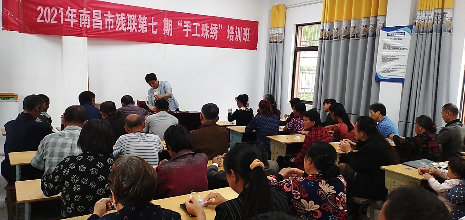 学习百年党史, 汲取奋进力量,把党史学习转化为实际行动,进一步推进我市残疾人职业培训工作,促进残疾人高质量创业就业。5月21日,南昌市残联2021年第七期“手工制作(手工串珠)”在南昌市青云谱区赣艺龙职业学校正式开班。