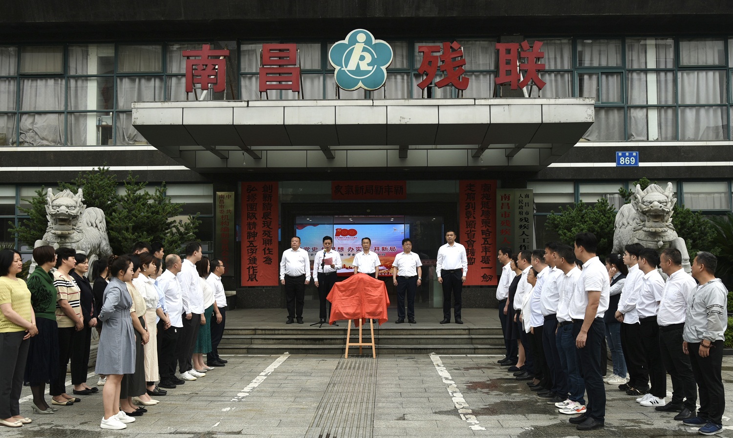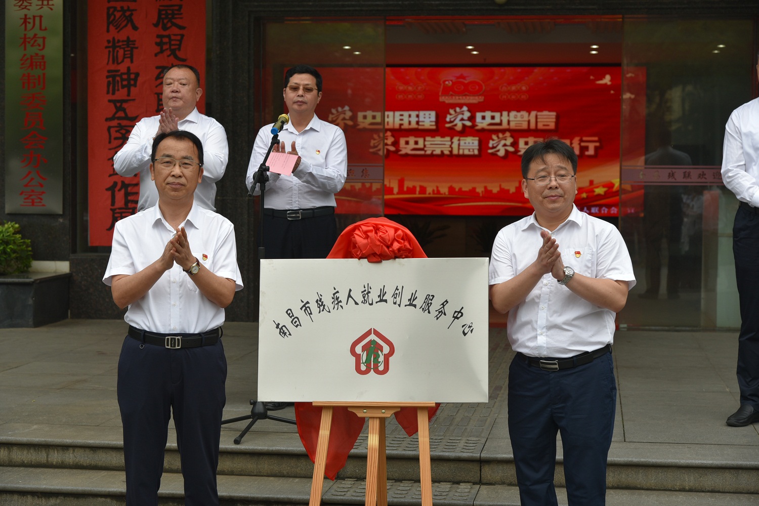 5月25日上午,南昌市残疾人就业创业服务中心揭牌仪式在市残联举行,市残联党组书记、理事长余颖出席仪式并讲话,副理事长吴卫平、副理事长邓林和、四级调研员徐训波出席仪式,副理事长林善岳主持仪式,市残疾人就业创业服务中心全体工作人员参加仪式。