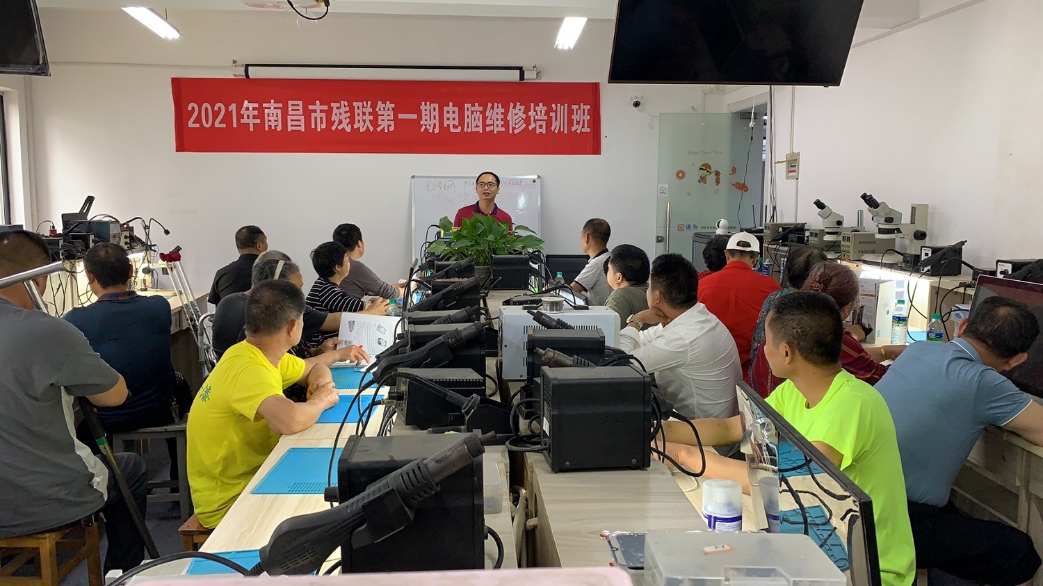 此次职业培训班由南昌市青山湖区速为职业培训学校提供技能培训,在为期一个月的培训过程中老师将从电脑的构成、基本原理、日常维护管理以及故障的判断、检测、排除等方面对50名学员进行全面系统培训学习,使他们熟练掌握电脑的维护、维修技术,为残疾人创业就业的工作打下坚实的基础。