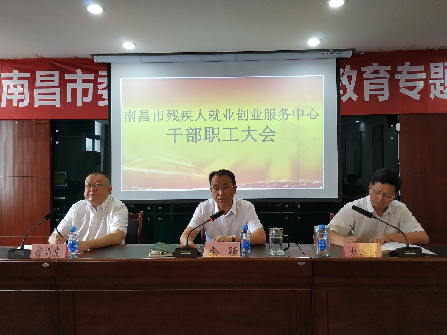 6月25日下午,市残疾人就业创业服务中心干部职工大会在市残联六楼会议室召开,市残联党组书记、理事长余颖出席会议并讲话,副理事长林善岳主持会议,四级调研员徐训波出席会议,市残疾人就业创业服务中心全体干部职工参加。