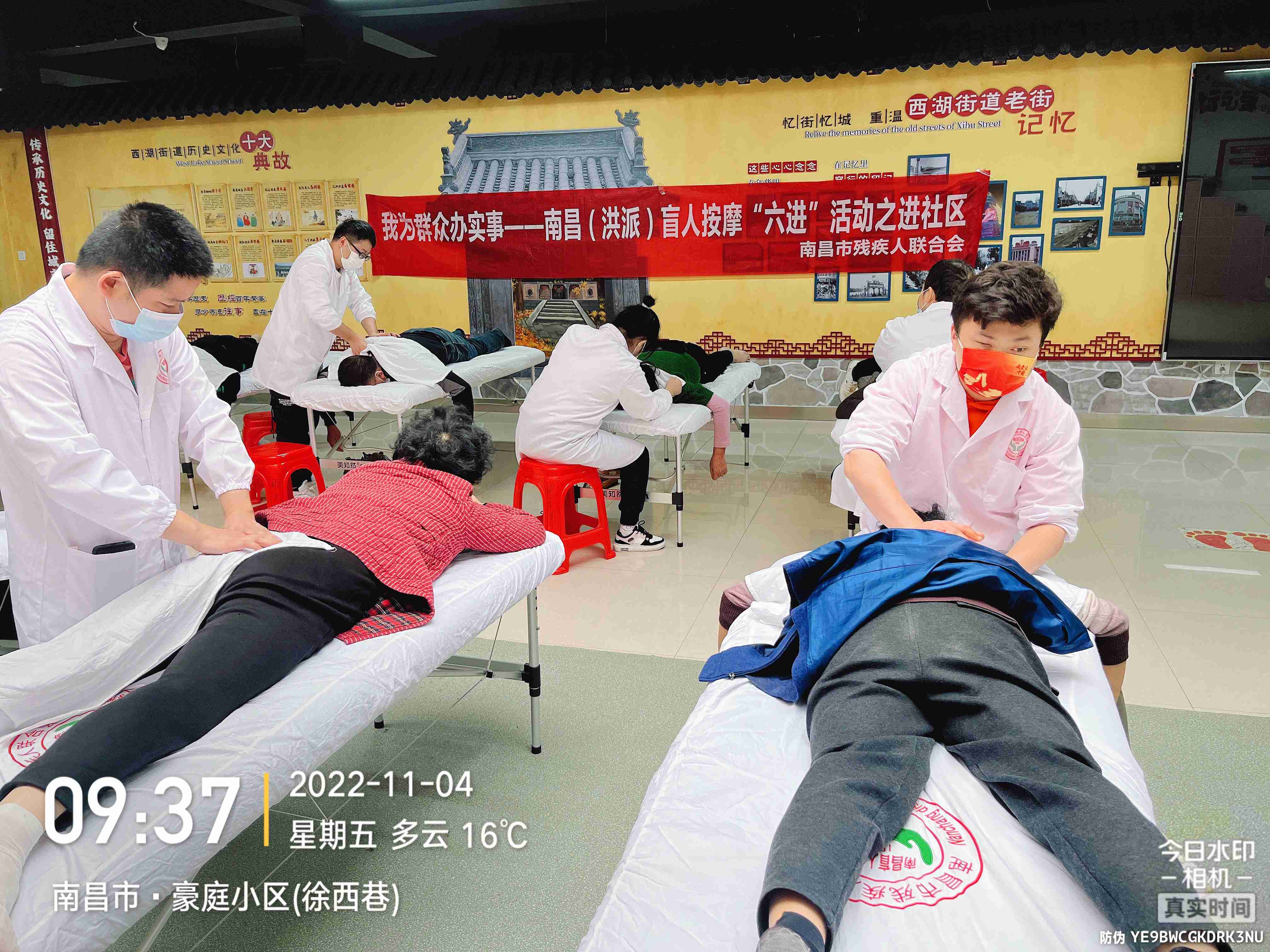 为推进“我为群众办实事”实践活动,坚持以服务为宗旨,11月4日上午,市残联在西湖区康王庙社区开展2022年第十九场南昌(洪派)盲人按摩“六进”志愿服务活动。
