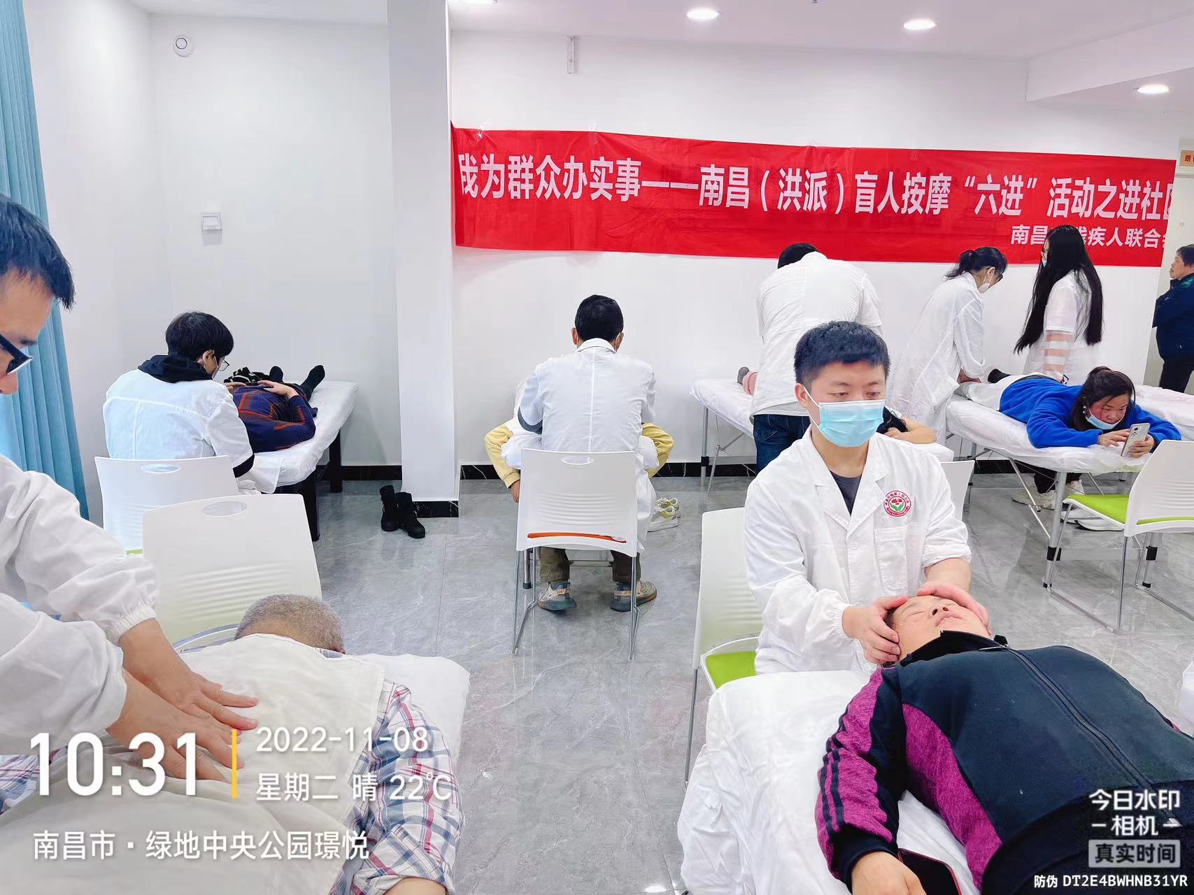 11月8日上午,市残联组织10名来自洪派盲人按摩机构的盲人按摩师在新建区花海社区开展2022年第二十场南昌(洪派)盲人按摩“六进”志愿服务活动。