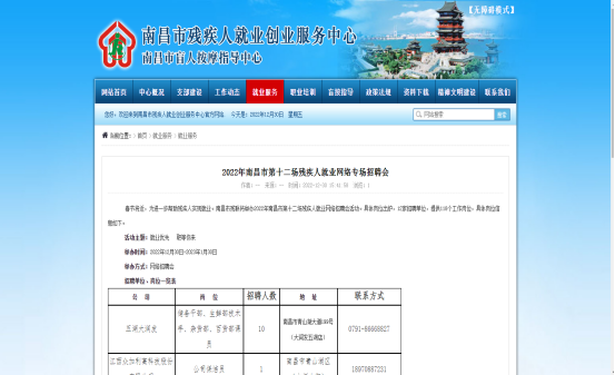 春节将近,为进一步帮助残疾人实现就业。南昌市残疾人联合会于12月30日在南昌市残疾人就业创业服务中心官网和微信公众号上开展以“就业优先 职等你来”为主题的2022年南昌市第十二场残疾人就业网络招聘会活动。