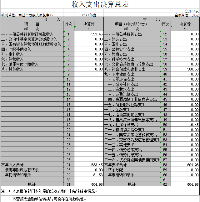 一、收入支出决算总表