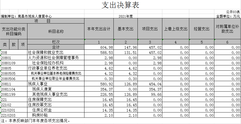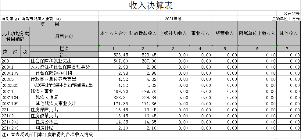 第二部分 2021年度单位决算表