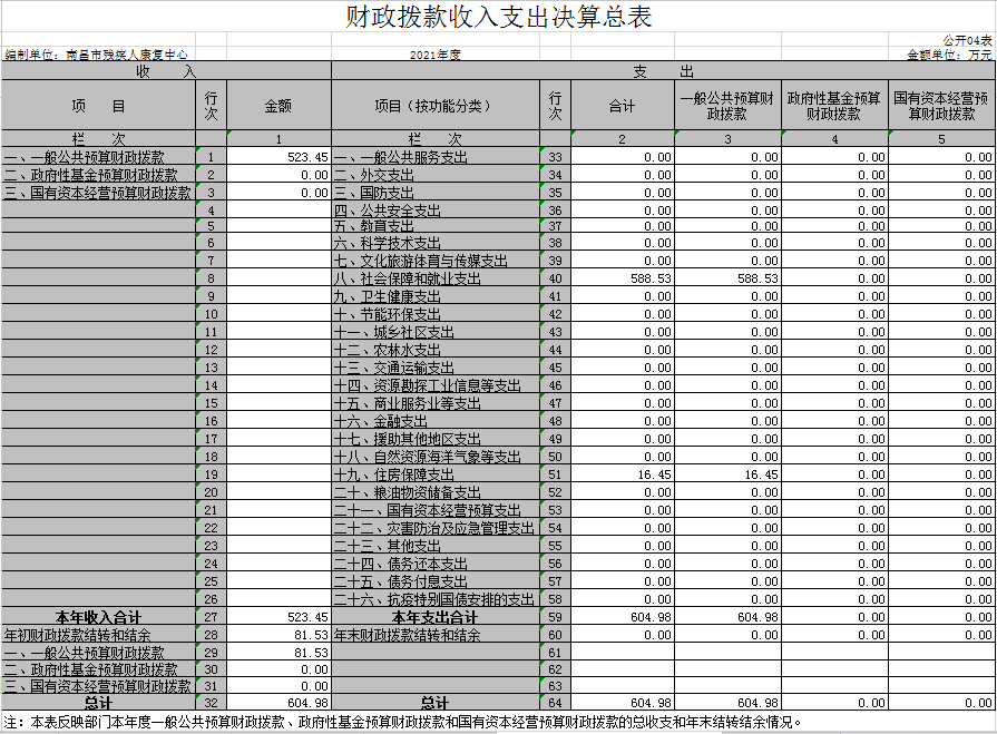 四、财政拨款收入支出决算总表
