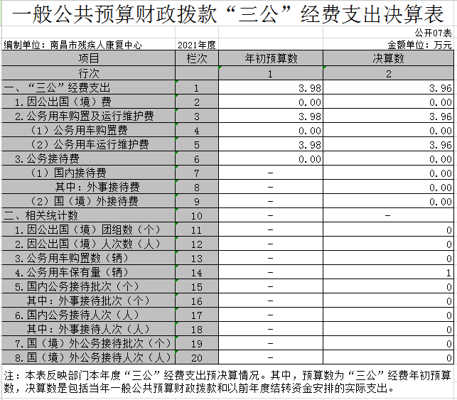 七、一般公共预算财政拨款“三公”经费支出决算表