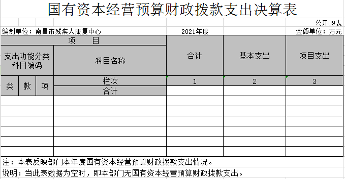 九、国有资本经营预算财政拨款支出决算表