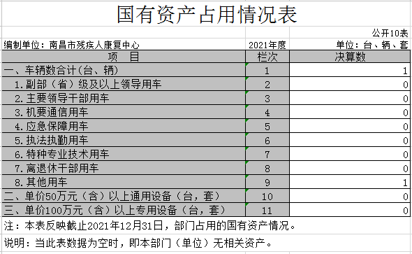 十、国有资产占用情况表
