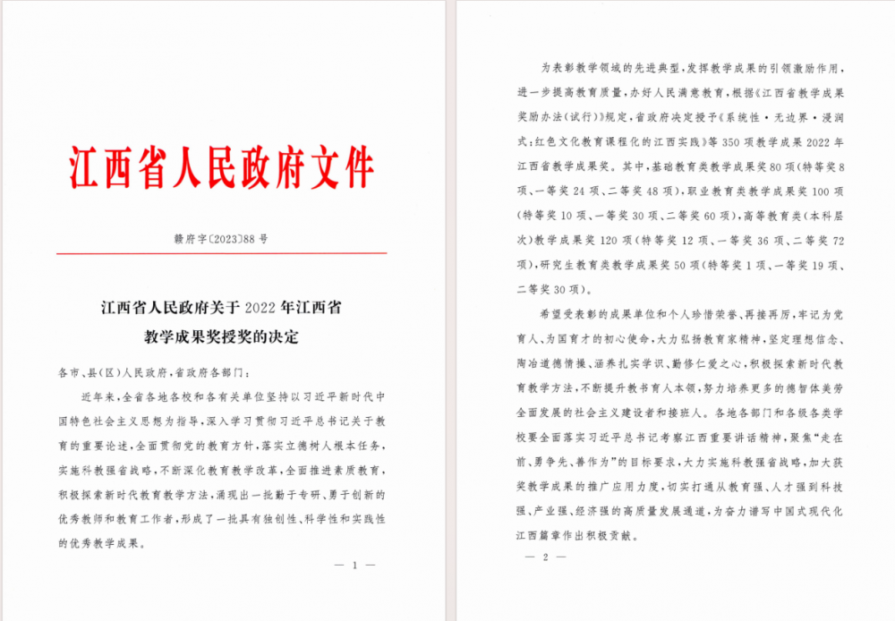 2022年江西省教学成果奖授奖项目名单(东湖区)